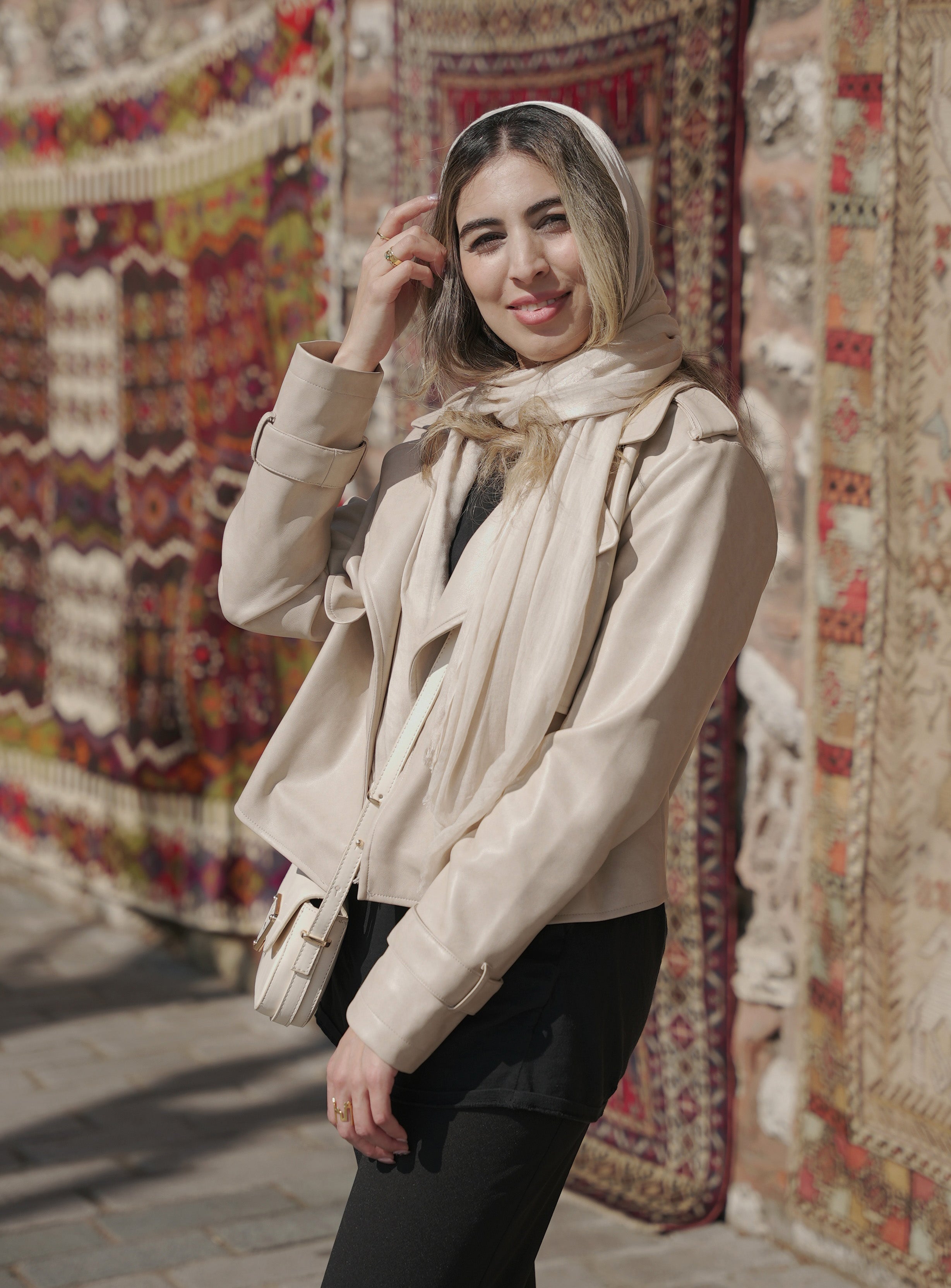 Each piece is carefully designed by Madiha Malik in her personal studio located in North Jersey, close to NYC. Her design experience at North Carolina State University College of Design allowed her to experiment with various print methods including woodworking, screenprinting and laser-cutting which sparked her desire to enhance her calligraphy and study of geometric patterns beyond paper. She is always looking for innovative ways to fuse her knowledge of Eastern design into Western fashion.